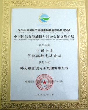 • 2009年3月在胡錦濤、溫家寶等中央領(lǐng)導(dǎo)出席的中國(guó)國(guó)際節(jié)能減排與新能源科技博覽會(huì)和高峰論壇上評(píng)為“中國(guó)十佳節(jié)能減排先進(jìn)企業(yè)”。